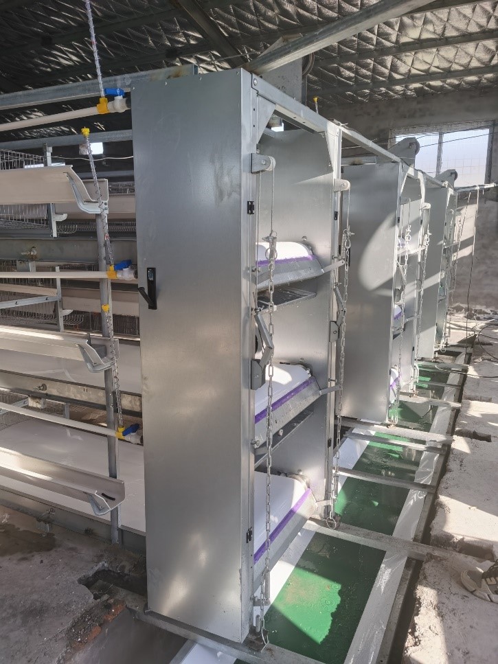 - A-type layer cage houses upgrading to regular, labor-free manure removal.